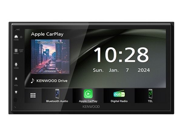 Kenwood DMX6523DAB dubbel-DIN bilradio Android Auto™ / Apple CarPlay, anslutning för backkamera, DAB+ tuner, Bluetooth handsfree