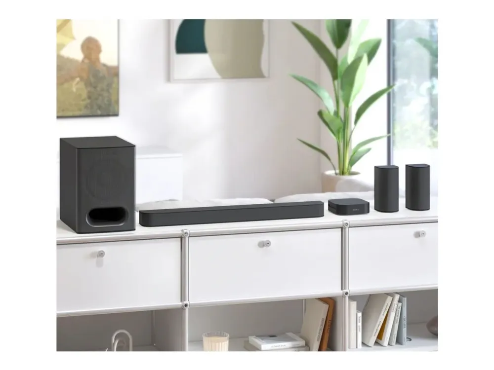 Sony BRAVIA Theatre System 6 HT-S60 levererar en uppslukande ljudupplevelse med sin kraftfulla uteffekt på 1000 watt. Med ett 5.1-kanals surroundljudsystem skapar denna hemmabiosoundbar en fängslande ljudmiljö, perfekt för filmer, musik och spel. Digital Sound Enhancement Engine (DSEE) förbättrar klarheten och effekten, medan BRAVIA Sync möjliggör enkel integration med andra Sony-enheter. Nattlägesalternativen gör den idealisk för lyssning sent på kvällen utan att störa andra, och den väggmonterbara designen ger flexibilitet vid placering. HT-S60 är utrustad med ljudeffekter som Vertical Surround Sound och S-FORCE Pro Front Surround Sound och ger liv åt din underhållning. Flera inbyggda avkodare som Dolby Atmos och DTS:X stöder högupplösta ljudformat för en rik ljudupplevelse. Anslutningsmöjligheterna inkluderar HDMI-eARC, USB och Bluetooth, vilket möjliggör smidig streaming och anslutning till olika enheter. Förbättra din hemunderhållning med Sony BRAVIA Theatre System 6 HT-S60.