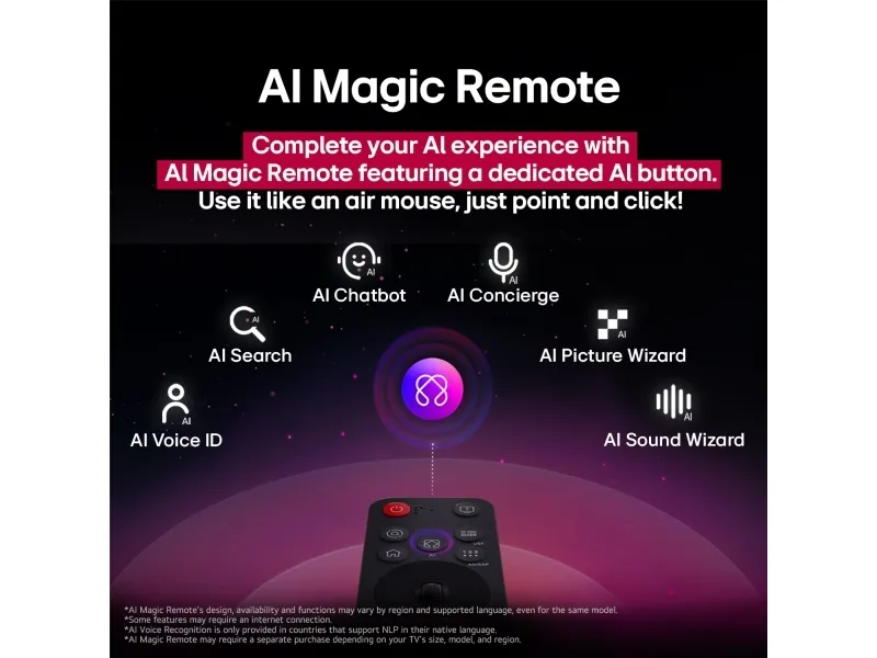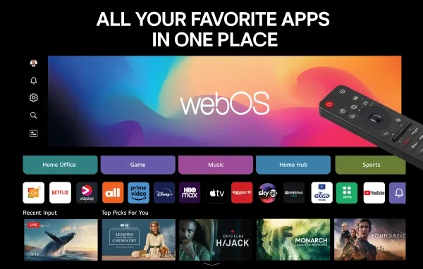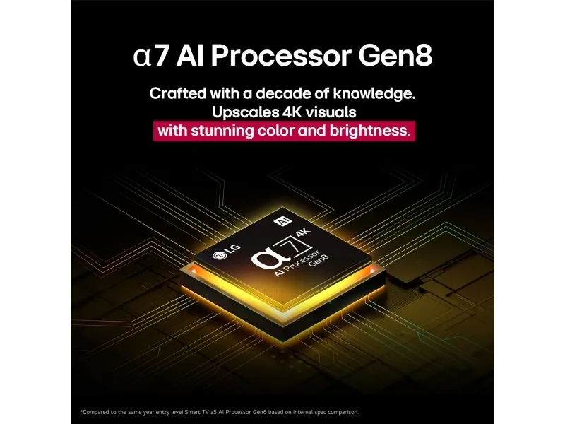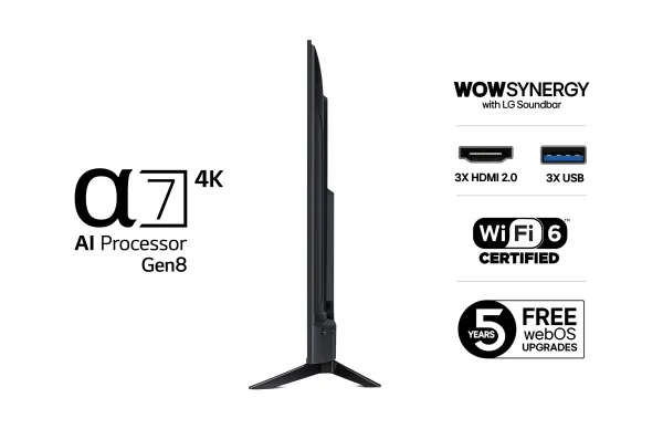 Ljudupplevelsen är imponerande, med ett 2-kanals högtalarsystem som levererar en total uteffekt på 20 watt. Med funktioner som Clear Voice Pro-teknik och Virtual 9.1.2 Up-mix förbättras dialogens tydlighet och ljudupplevelsen. TV:ns kompatibilitet med Bluetooth Surround och LG Sound Sync säkerställer att ljudet kan finjusteras och avnjutas trådlöst, vilket skapar en optimal underhållningsmiljö. Dessutom gör funktioner som webbläsning, uppspelning av internetvideo och stöd för streamingtjänster som Google Cast och LG Channels denna TV till en hubb för alla underhållningsbehov.