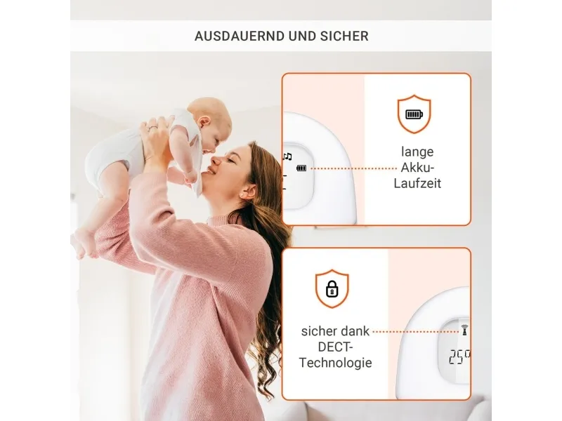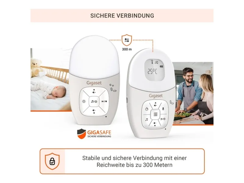 Gigaset BABY 100 Audio, DECT babyvakt, 300 m, 50 m, 300 m, Grå, Vit, LCD