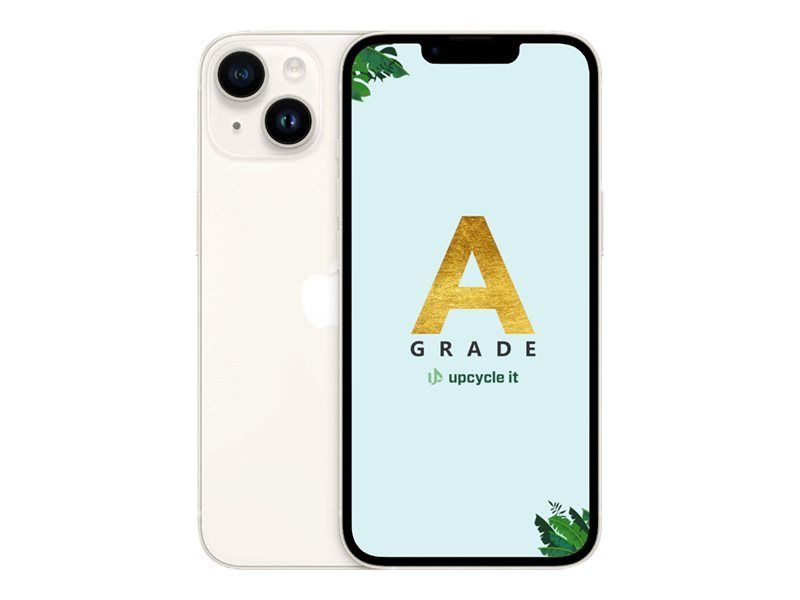 The Apple iPhone 14 by Upcycle It is designed with a 6.1-inch OLED display that provides vibrant colors and sharp images, thanks to its Super Retina XDR technology. With a resolution of 2532 x 1170 pixels, it offers a visual experience that enhances everything from browsing to streaming media. The touch-sensitive screen supports multi-touch functionality for a smooth user interface. Equipped with dual rear cameras, the iPhone 14 excels in photography, capturing images with a 12-megapixel main lens and a 12-megapixel ultra-wide camera, allowing for versatile shooting options including Night mode and Cinematic mode. Video recording capabilities reach up to 4K resolution at 60 fps, bringing video to life in detail.
