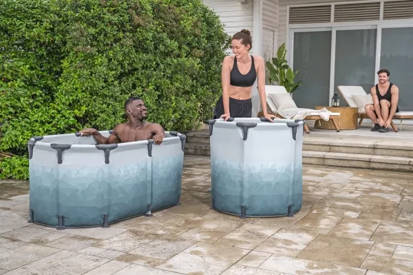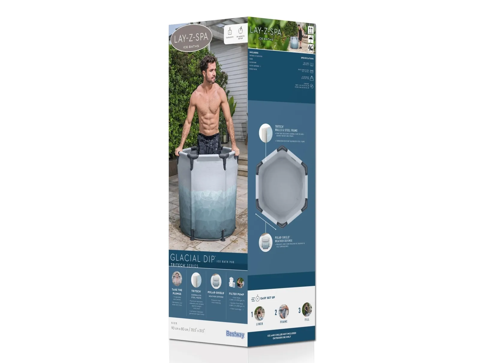 Dyp tæerne i en verden af kolde dukkerter med Lay-Z-Spa® Glacial Dip™ Isbadet. Dyk ned i det iskolde vand for at opfriske og forynge din krop. Dette transportable isbad er fantastisk til både nybegyndere og eksperter med sit transportable design og holdbare konstruktion.  Fordele ved kolde dyk:  Gendan, foryng og genoplad! En dukkert i iskoldt vand er et (koffeinfrit) wake up call, der styrker dine sanser. Det iskolde vand hjælper med at opfriske din krop og dit sind, mens du nyder den kolde temperatur. Holdbar konstruktion:  Den udvendige væg er konstrueret af 3-lags Tritech®-materiale, der har vist sig at være både punkterings- og skaderesistent. Den korrosionsbestandige stålramme giver styrke og stabilitet, selv ved gentagen brug. Dugen er bygget med Polar-Shield™-beskyttelse for at holde den fleksibel, selv i kolde temperaturer. Brug den hele året rundt uden bekymringer! Indhold:  Glacial Dip leveres med en filterpumpe, der holder vandet rent og klart, og et forstærket dækken, der er designet til at låse kulden inde, når det ikke er i brug, og forhindre støv og snavs i at samle sig på vandet. En køler og is er ikke inkluderet i dette sæt.