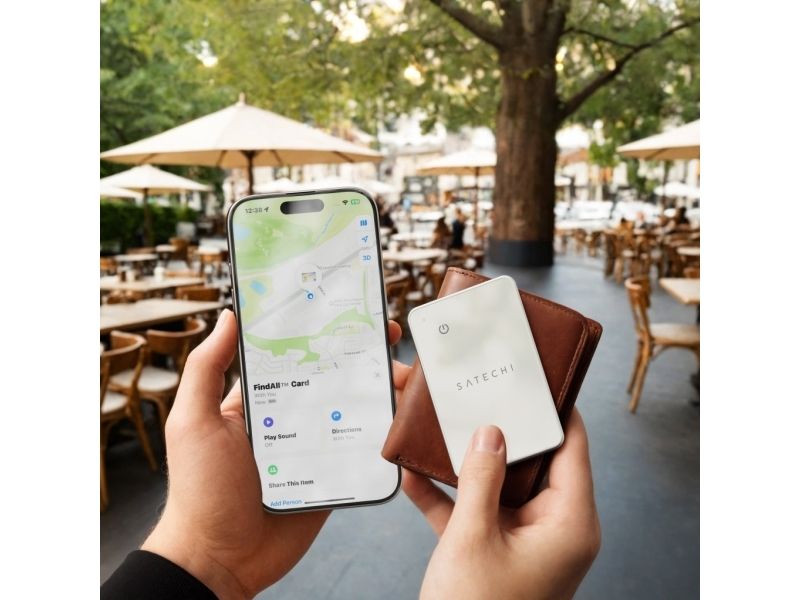 Never lose your wallet again. The Satechi FindAll? Wallet Card seamlessly integrates with Apple's Find My network letting you track essentials from your iPhone. With its credit-card slim design and sand finish it combines peace of mind with elegant everyday carry.Precision tracking via Apple's Find My ecosystemUltra-slim wallet-friendly profileYear-long battery with easy replacementWater and dust resistant durabilityInstant one-tap setupPrecision Tracking via Apple's Find My Ecosystem See your wallet's location in real-time on the Find My app across all your Apple devices. Trigger a distinct sound to locate items under couch cushions or receive notifications if left behind at a café. The encrypted network anonymously crowdsources location data from millions of Apple devices worldwide. With a connection range of 10-20 meters indoors and 20-50 meters outdoors the FindAll? Card ensures you can quickly locate your wallet whether it?s slipped between couch cushions or left on a coffeeshop table.   Ultra-Slim Wallet-Friendly Profile Crafted thinner than two credit cards (2.5mm) the FindAll? slides discreetly into any wallet slot without bulk. The sand anodized aluminum finish resists scratches while complementing premium leather accessories. Never sacrifice style for security. Year-Long Battery with Simple Replacement The FindAll? Card features a wirelessly rechargeable battery that lasts up to 16 months on a single charge ensuring long-term convenience. No charging cables mean one less device to manage in your daily routine. Its battery is compatible with any Qi Qi2 or MagSafe charger making recharging as simple as setting it down. Water and Dust Resistant Durability With IP67 protection your tracker withstands rain spills and accidental washes. The reinforced casing shields against drops and daily abrasions in pockets or bags. Travel confidently knowing your location lifeline works in downpours or dusty trails. Instant One-Tap Setup Activate your FindAll?  in 15 seconds: Simply hold it near your iPhone and approve the connection prompt. No apps to download or accounts to create. Share location access with family members so everyone can help find misplaced items. Package includes:Satechi FindAll? Wallet Card (Sand)Quick-start guideProduct specificationsCompatibility: iPhone 11 or later with iOS 15+Connectivity: Bluetooth 5.4 Apple Find MyDimensions: 54mm × 85.6mm × 2.5mmWeight: 17.8 gMaterials: Anodized aluminum enclosureEnvironmental: IP67 water/dust resistanceWireless Charging Input: 2.5WBattery Size: 220mAh; Rechargeable LithiumSpeaker Volume: 80-90dbApple FindMy: MFi CertifiedColour: Sand