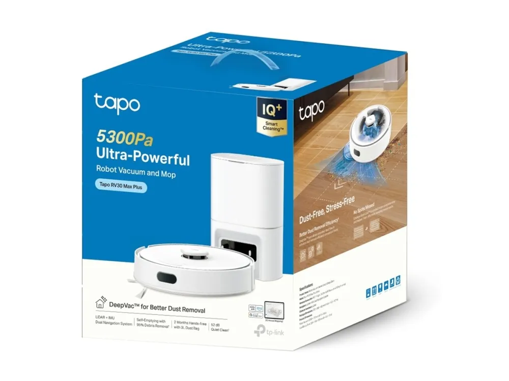 TP-Link Tapo RV30 Max Plus är en mångsidig robotdammsugare som är utformad för att förenkla städningen. Denna dammsugare har ingen påse och samlar effektivt upp damm och skräp. Den har en dammkapacitet på 0,3 liter och ett HEPA-filter som fångar upp fina partiklar. Den är utrustad med tekniker som 3D-kartläggning och LiDAR+IMU-dubbelnavigering, vilket gör att den kan navigera genom olika rum och säkerställa att hela ytan städas. Enheten använder också DeepVac-teknik för effektiv borttagning av djurhår, vilket gör den till ett utmärkt val för hushåll med fyrbenta vänner.