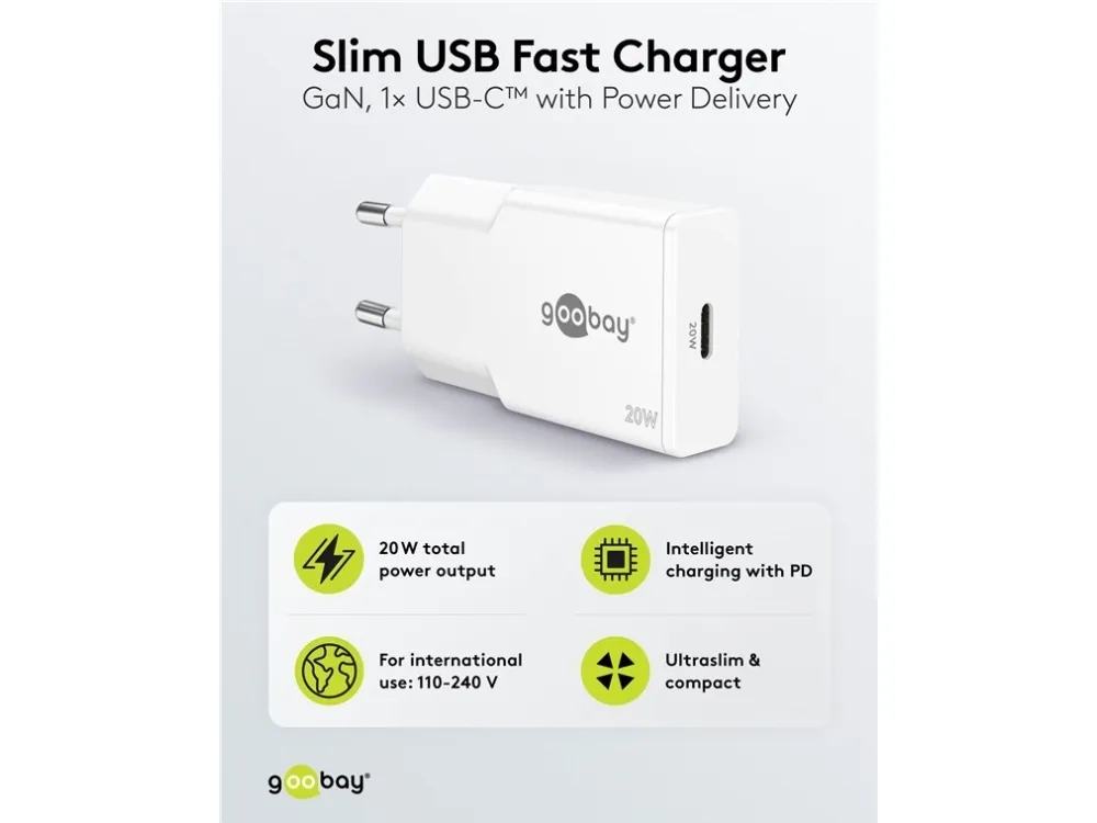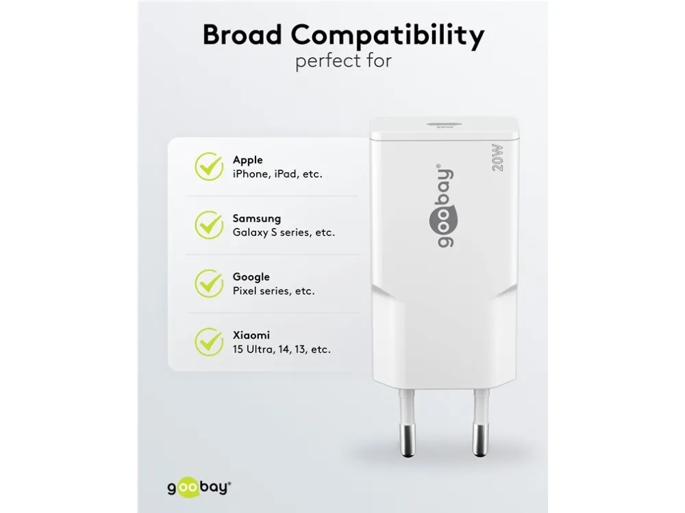 Med en effekt på 20 W är USB-laddaren särskilt anpassad för små enheter som smartphones, Bluetooth-hörlurar, surfplattor eller powerbanks