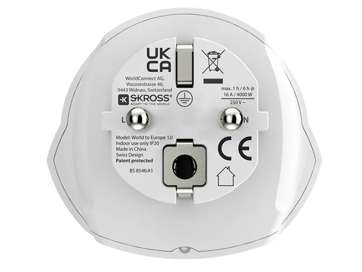 Skross 1.500211C-E, Universal, Typ C (euro-kontakt), Typ A, Typ B, Typ I (AU), Typ J (CH), Typ L (IT), 100 - 250 V, 16 A, Vit