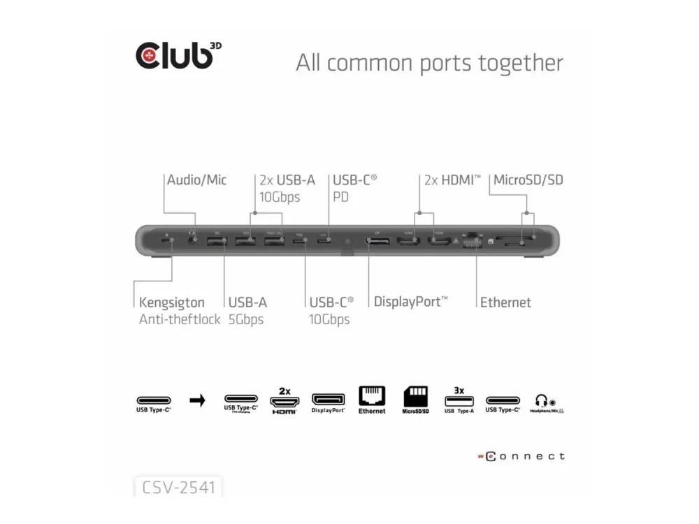 Featuring a detachable USB-C power cable and compatibility with SD and microSD cards, the convenience of a detachable design allows for easy storage and transport. Enhance your workspace with the Club 3D CSV-2541, designed to keep devices powered while providing a solid foundation for a wide array of peripherals.