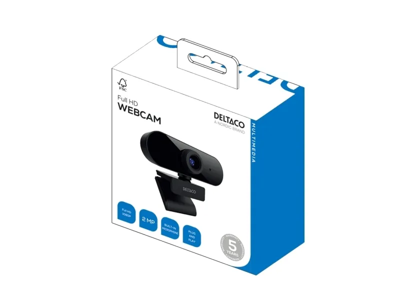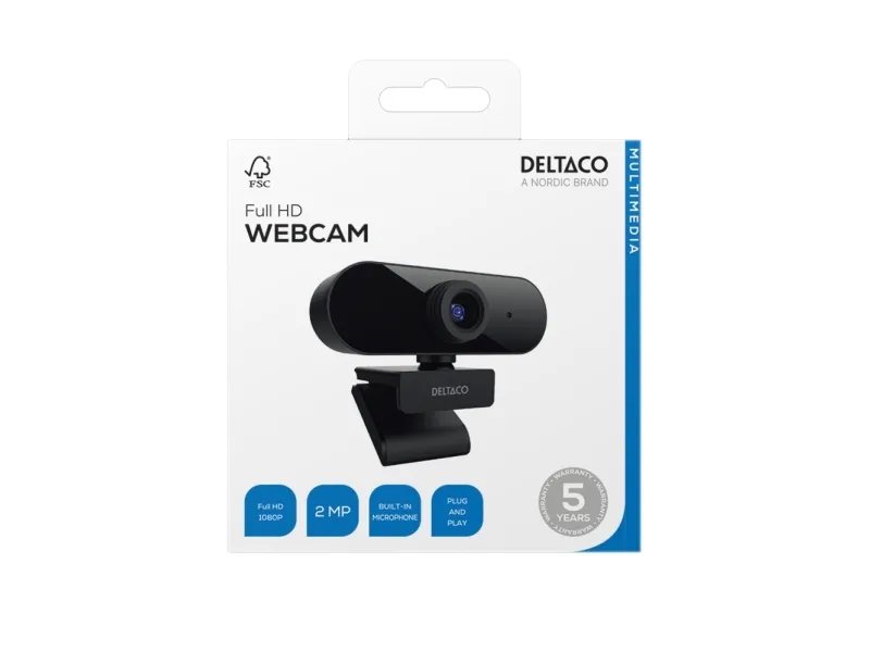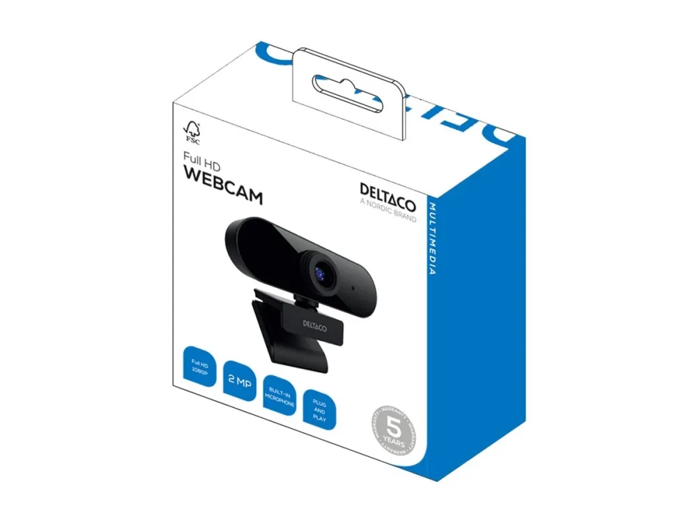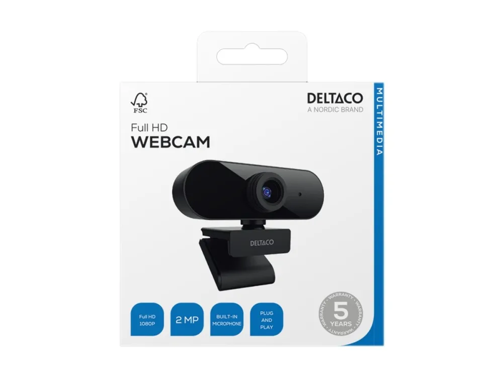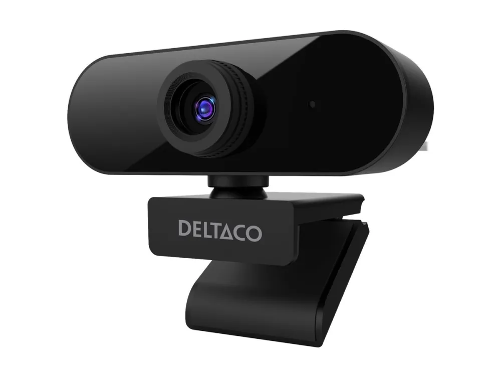 DELTACO W-100 - Webbkamera - färg - 2 MP - 1920 x 1080 - ljud - USB