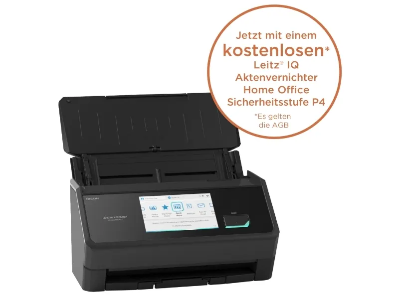 Ricoh ScanSnap iX2500 är en mångsidig skrivbordsscanner för både professionella och privata användare. Med en optisk upplösning på upp till 600 DPI ger den tydliga och detaljerade skanningar av olika typer av dokument, inklusive vanligt papper, visitkort, foton och kvitton. IX2500 har en 5-tums pekskärm som förenklar navigeringen mellan funktioner som skanning till molnet, e-post eller Office 365. Automatisk färgdetektering och dubbelsidig skanning med en hastighet på upp till 45 sidor per minut effektiviserar arbetsflödet och ökar produktiviteten. Den klarar olika dokumentstorlekar med sin automatiska dokumentmatare (ADF) som kan hantera upp till 100 ark åt gången. Ytterligare funktioner som detektering av tomma sidor, minskning av genomblödning och bildrotation garanterar kvalitet och noggrannhet. Anslutningsmöjligheter som USB 3.2 Gen 1x1, Wi-Fi (ax) och Bluetooth 5.2 ger flexibel integration med andra enheter. Ricoh ScanSnap iX2500 är miljövänlig, ENERGY STAR-certifierad och uppfyller RoHS-standarder, vilket garanterar låg strömförbrukning. Den arbetar effektivt med en strömförbrukning på 17 watt under drift och 0,2 watt i standby. Den är lämplig för olika kontorsmiljöer och kan användas i temperaturer mellan 5 °C och 35 °C och luftfuktighet mellan 20 % och 80 %.