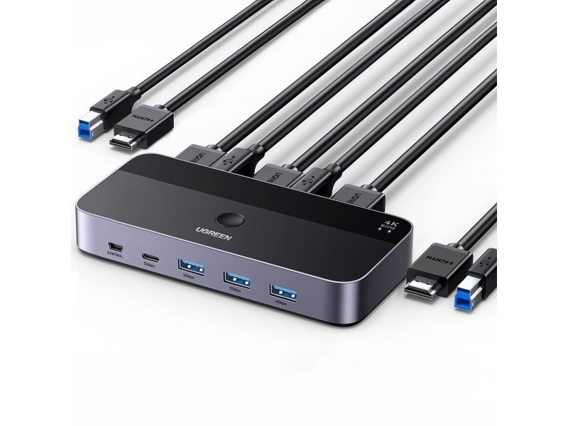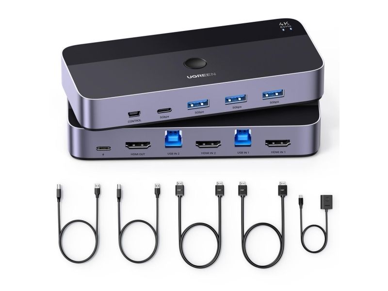 UGREEN KVM-switch CM664 3x USB-A, 2x USB-B, 2x USB-C, 3x HDMI, micro USB svart