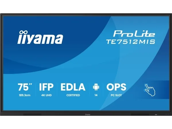 The TE7512MIS-B4AG is an exceptional 4K UHD interactive display designed by iiyama to enhance collaboration, communication, and engagement. With key features like Zero Airgap LCD DLED screen eliminating parallax, accurate PureTouch-IR, iiWare 13E with Android 14, WiFi and the iiyama DMS (Device management System), this display transforms the way you engage with content, making it an indispensable tool for modern workspaces and educational settings. Boasting a new 4K Interface with User Profiles for simple login and access to your very own bespoke application and Cloud Drives or harmonize with your existing estate and unleash the true power of Windows and Office applications. iiyama TE7512MIS-B4AG becomes a highly personalised & flexible device within a busy hybrid environment for multiple users. Share wirelessly more easily than ever before with iiyama Share and EShare app, bringing effortless ideation and efficient collaboration in your enterprise or school. This affordable display transforms the modern workplaces, educational institutions, dynamic meeting spaces and beyond. Elevate your interactive experience with the iiyama TE12 SERIES displays and embrace the future of visual communication.iiyama TE7512MIS-B4AG. Product design: Kiosk design. Display diagonal: 190.5 cm (75"), Display technology: LCD, Display resolution: 3840 x 2160 pixels, Display brightness: 400 cd/m², HD type: 4K Ultra HD, Touchscreen. Wi-Fi. Operating hours (hours/days): 24/7. Operating system installed: Android. Product colour: Black