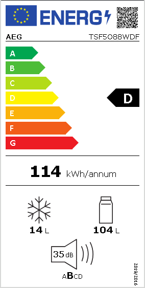AEG TSF5O88WDF, 118 l, Inbyggd, D, 35 dB, SN-T, Frostfri (kyl)