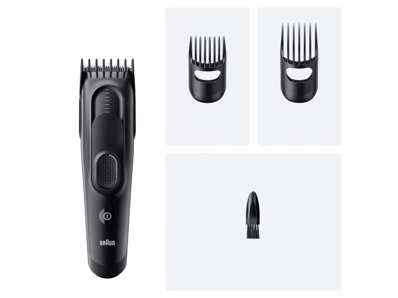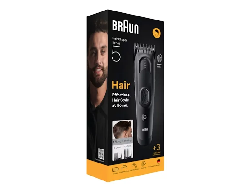 Built to last: The cordless hair clippers feature Lifetime Sharp Blades & a powerful Ni-MH battery with a 50-min runtime.Braun HC5530. Product colour: Black, Minimum hair length: 3 mm, Maximum hair length: 3.5 cm. Power source: Battery, Operating time: 50 min, Battery type: Built-in battery. Width: 45 mm, Depth: 45 mm, Height: 180 mm. Package type: Box