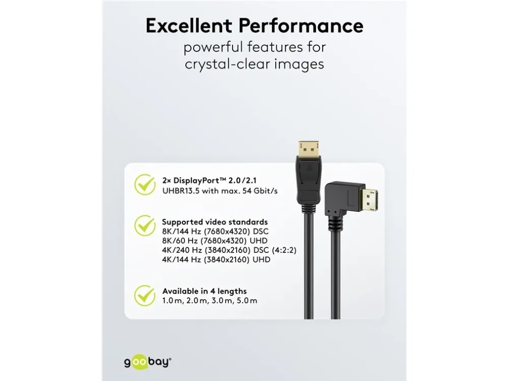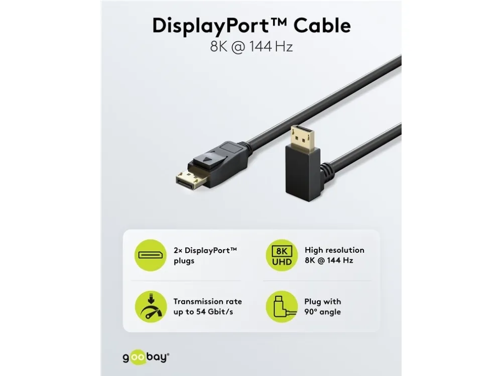 Goobay 77058, 3 m, DisplayPort, DisplayPort, Hankoppling, Hankoppling, 7680 x 4320 pixlar