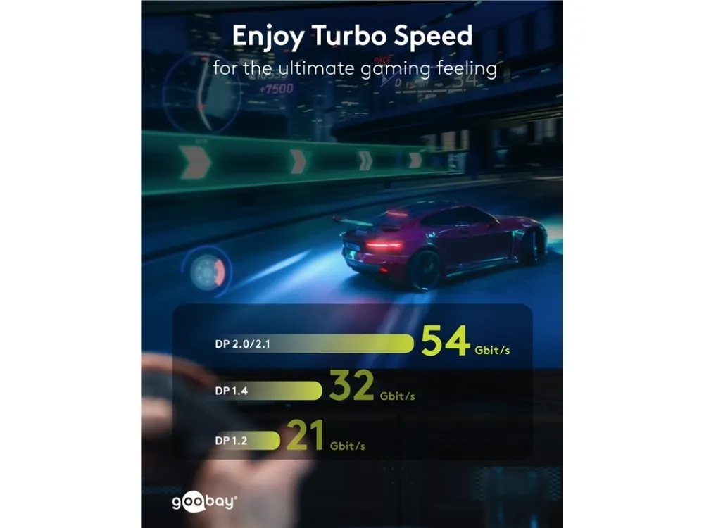 8K-kabel, särskilt för spel. Jämna bilder utan att det skakar tack vare hög uppdateringsfrekvens på upp till 240 Hz (beroende på grafikkort och bildskärm)