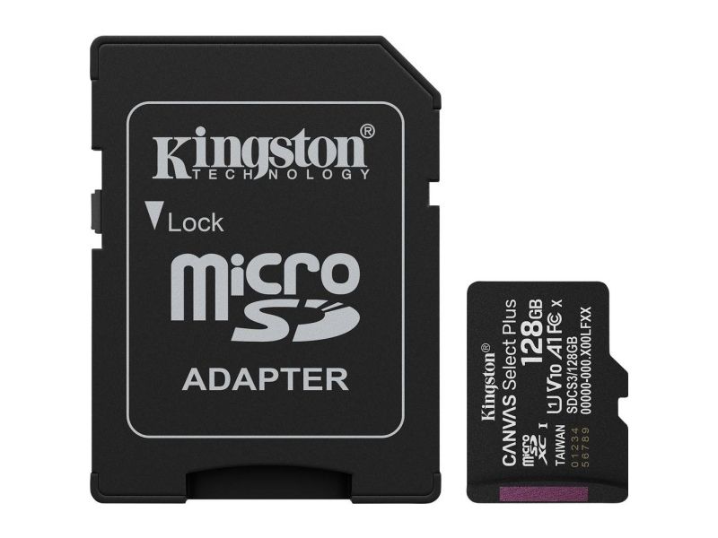 Kingston 128 GB Canvas Select Plus Gen3 microSD A1 U1 V10 (150R) + adapter