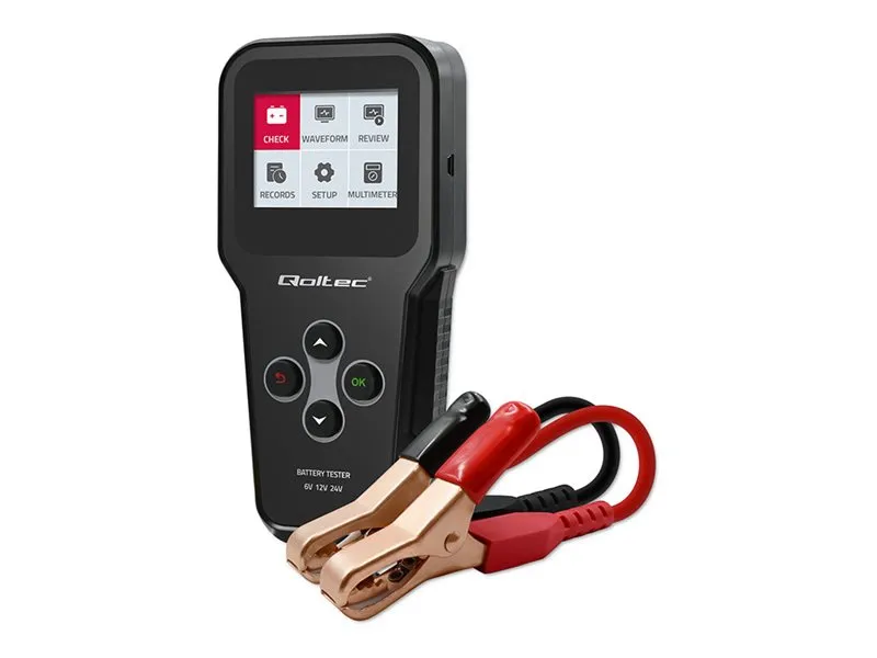 The Qoltec digital battery tester is designed to provide accurate readings for 12V batteries with capacities ranging from 30 Ah to 220 Ah. Featuring a clear LCD display, it offers an easy-to-read interface for quick assessments of battery status. This essential tool is ideal for both personal and professional use, ensuring reliable performance in various conditions, with operational temperatures ranging from -20°C to 60°C. It comes complete with a carrying case, USB cable, and power cables for storage and use. The tester prioritizes safety with built-in polarity protection and overvoltage protection, allowing users to test batteries confidently without the risk of damaging equipment. Suitable for various battery maintenance tasks, the Qoltec digital battery tester is a practical solution for everyday needs.