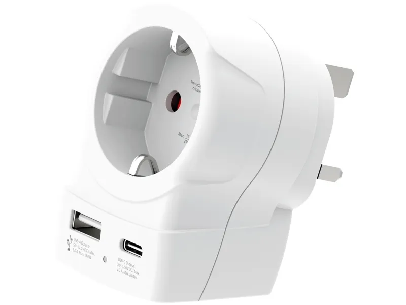 Reseadapter Europa till UK m.fl. USB-A/USB-C 20W PD Jordad