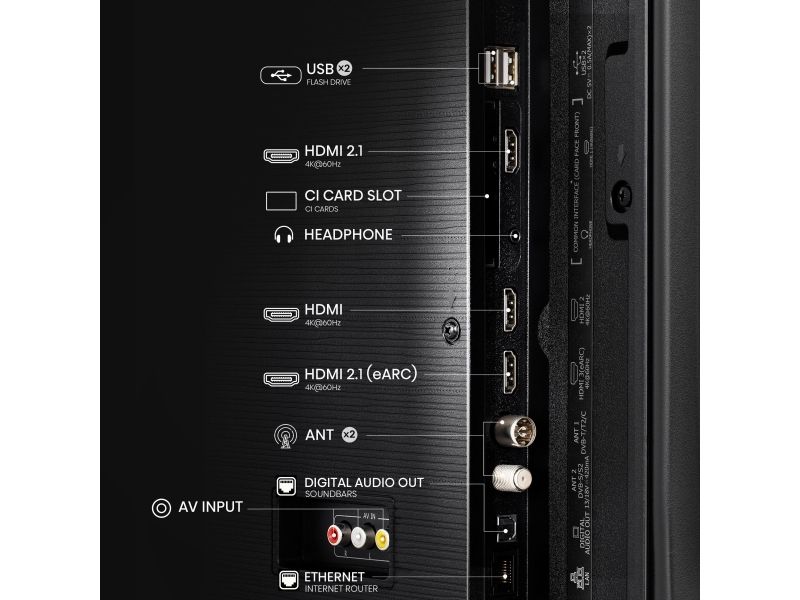 Med en kraftfull MT9603 fyrkärnig processor kan denna TV hantera olika mediaformat och erbjuder smidiga anslutningsmöjligheter, inklusive HDMI, USB och LAN. Surfa på webben eller streama program från plattformar som Netflix, YouTube och Disney+ med inbyggt Wi-Fi och Bluetooth 5.0. Fjärrkontrollens röststyrningsfunktion förbättrar användbarheten och gör det enkelt att navigera mellan kanaler och appar.