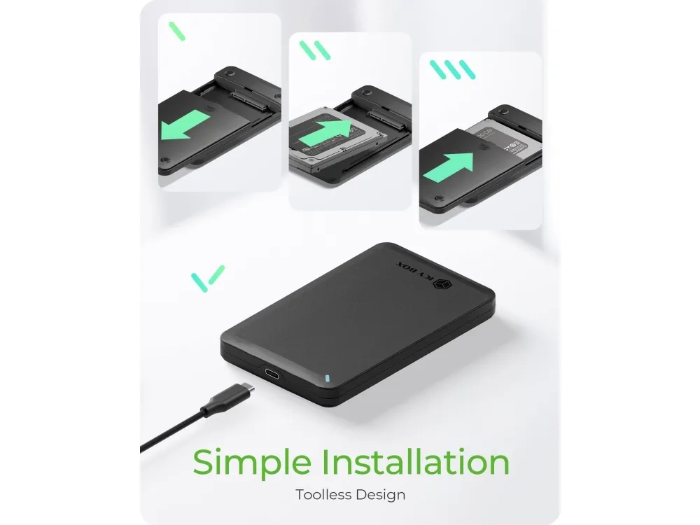 ICY BOX IB-201T-CU31, SSD-inkapsling, 2.5", Serial ATA II, Serial ATA III, 6 Gbit/s, USB-anslutning, Svart