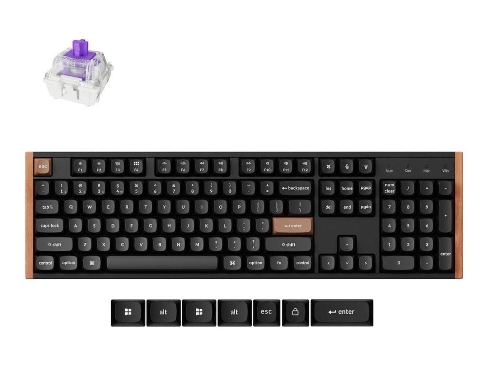 Keychron K10 HE - Tangentbord - 100% - full size - bakgrundsbelyst - trådlös - Bluetooth 5.2, USB - tangentbrytare: Gateron Double-Rail Nebula (hot-swappable) - svart
