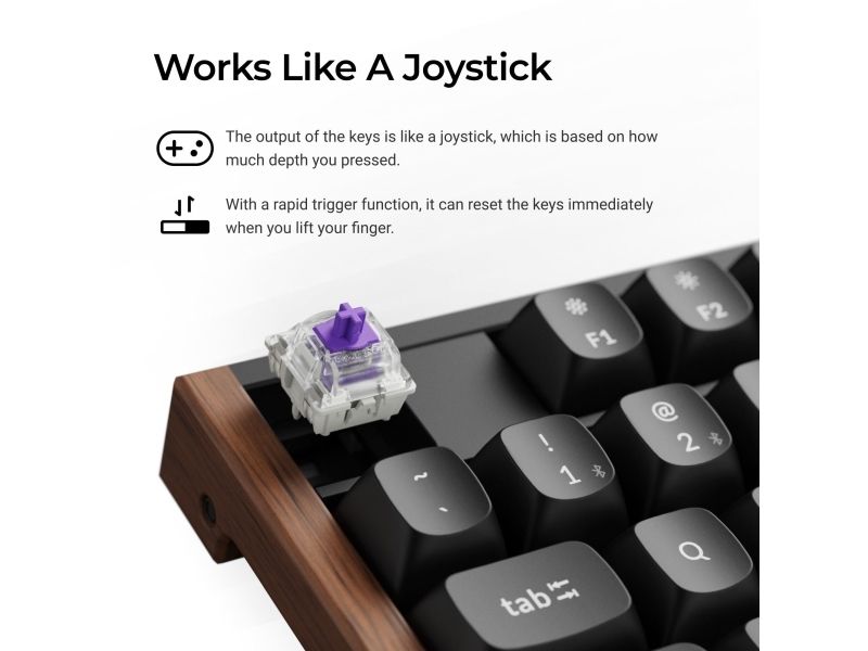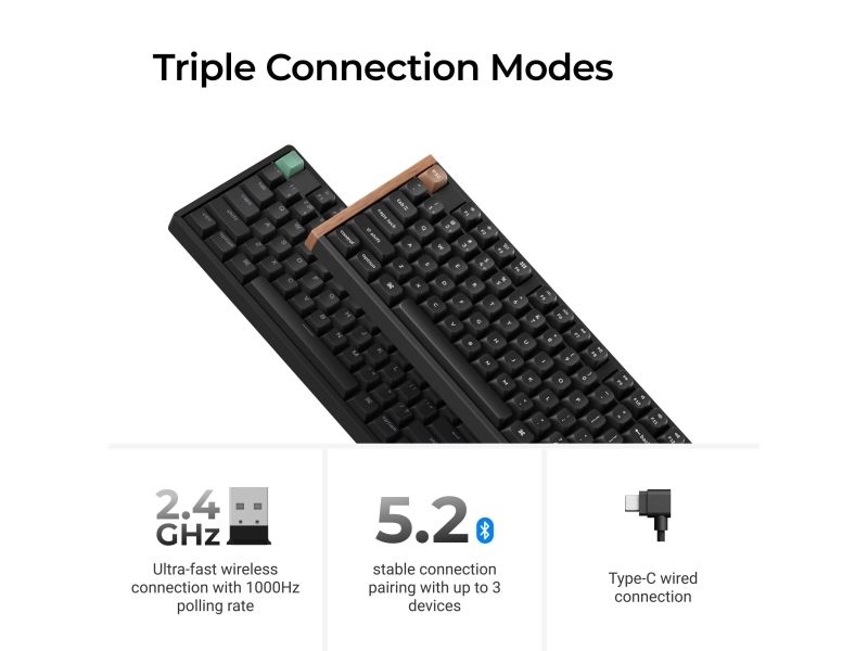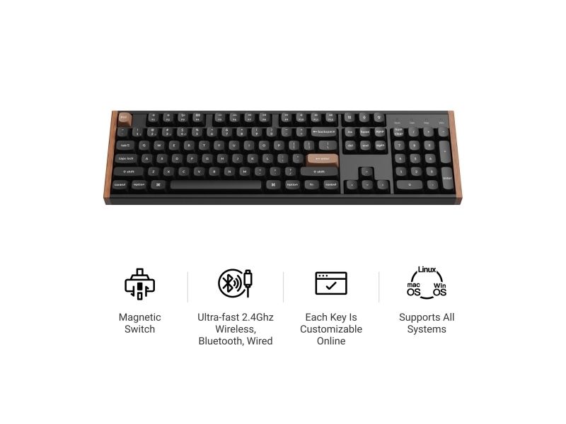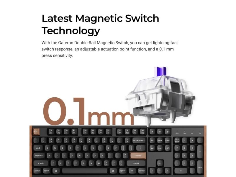 The Keychron K10 HE is a versatile keyboard designed to meet a variety of user needs, offering both wired and wireless connectivity options. With Bluetooth 5.2 and a 2.4 GHz connection, users can enjoy seamless and reliable performance whether at home or on-the-go. The magnetic keyboard technology ensures a comfortable typing experience, while the Gateron Double-Rail Nebula hot-swappable switches allow for customization and easy replacement of switches. Its full-sized layout includes a numeric keypad, making it suitable for both productivity and gaming. Crafted from quality materials such as aluminum and doubleshot PBT keycaps, the K10 HE provides durability and aesthetic appeal. The adjustable height feature ensures ergonomic comfort during extended use, reducing strain on the wrists. With an operating temperature range of -10 °C to 50 °C, this keyboard is built to withstand varying environmental conditions.