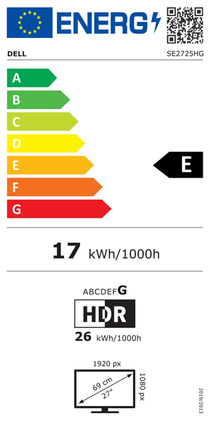 Dell SE2725HG - LED-skärm - 27" - 1920 x 1080 Full HD (1080p) @ 200 Hz - IPS - 300 cd/m² - 1000:1 - 1 ms - 2xHDMI, DisplayPort - BTO - med 3 års grundläggande maskinvaruservice med avancerat byte efter fjärrdiagnos