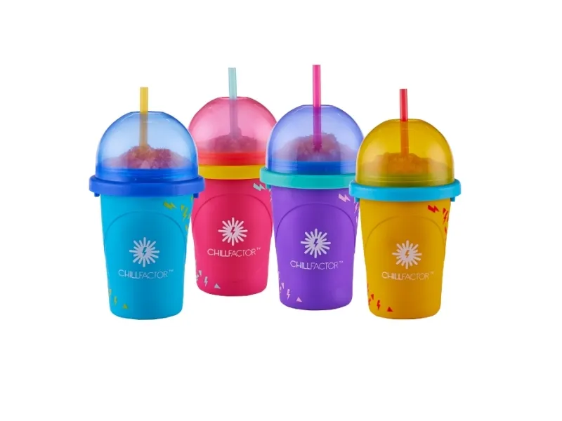 Frys din Chillfactor i 8-10 timmar, ta ut den och häll i den önskade sockerhaltiga drycken. Krama i några minuter tills du har en uppfriskande slushy.