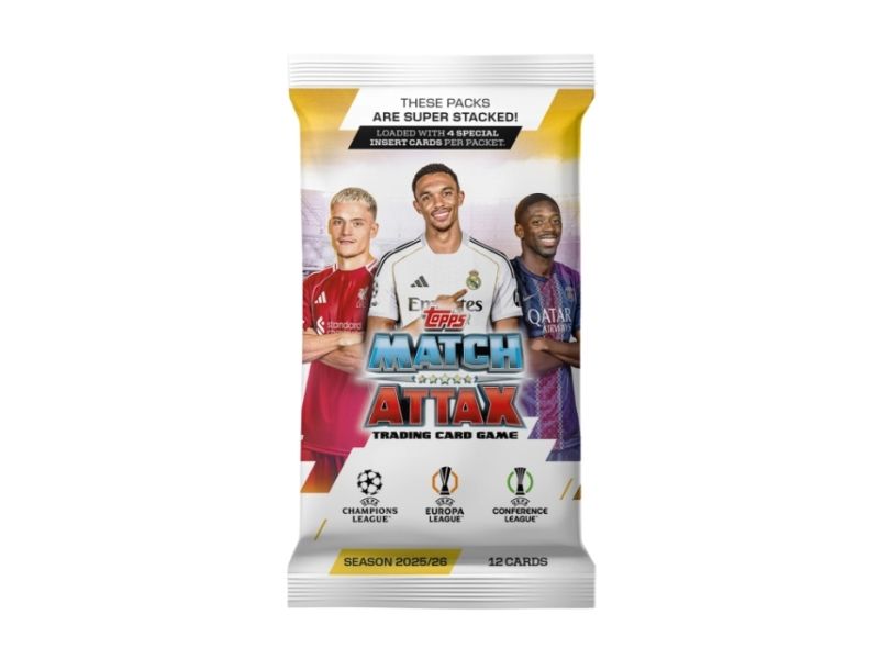 Topps UCC Match Attax Samlarkort för säsongen 2025/26 Match Attax-samlarkorten från Topps är den officiella licensen för de tre största klubbturneringarna i Europa: UEFA Champions League, UEFA Europa League och UEFA Conference League. I Match Attax-kollektionen kan du få tag på alla de största fotbollsspelarna från Europas bästa klubblag: Lamine Yamal (Barcelona), Kylian Mbappé (Real Madrid), Ousmane Dembélé (PSG) ... Kollektionen innehåller det välkända basuppsättningskortet, glansiga foilkort, specialkort, kort i begränsad upplaga och både nya och klassiska kortdesigner. Har du turen att öppna ett paket eller en burk med ett av de sällsynta och eftertraktade korten från Match Attax 2025/26?