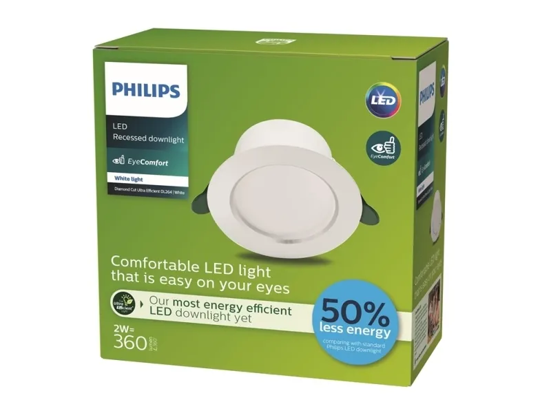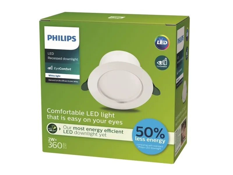 Lamp holder- LED. Max. system power- 2 W. Degree of protection (IP)- IP20. Colour temperature- 3000 - 3000°K. Luminous flux- 350 - 350lm. Voltage- 220 - 240V. Mandatory warranty- 24 mo. With movement sensor- No. Brand- Philips. Width- 80 - 80mm. Length- 80 - 80mm. Height- 49 - 49mm. Mounting method- Recessed ceiling lights. Product type- Built-in lamp. Suitable for number of lamps- 1. Type of luminaire- Recessed. With light source- Yes. Article- 929003258831. Max. light bulb power- 2 W. Lamp type- LED not exchangeable. Colour housing- White. Material housing- Metal. Luminaire efficacy- 175 lm/W. Protection class- II. Material cover- Plastic. Adjustability- Not adjustable. With light sensor- No. Colour cover- White. Warranty for legal entities- 24 mo.