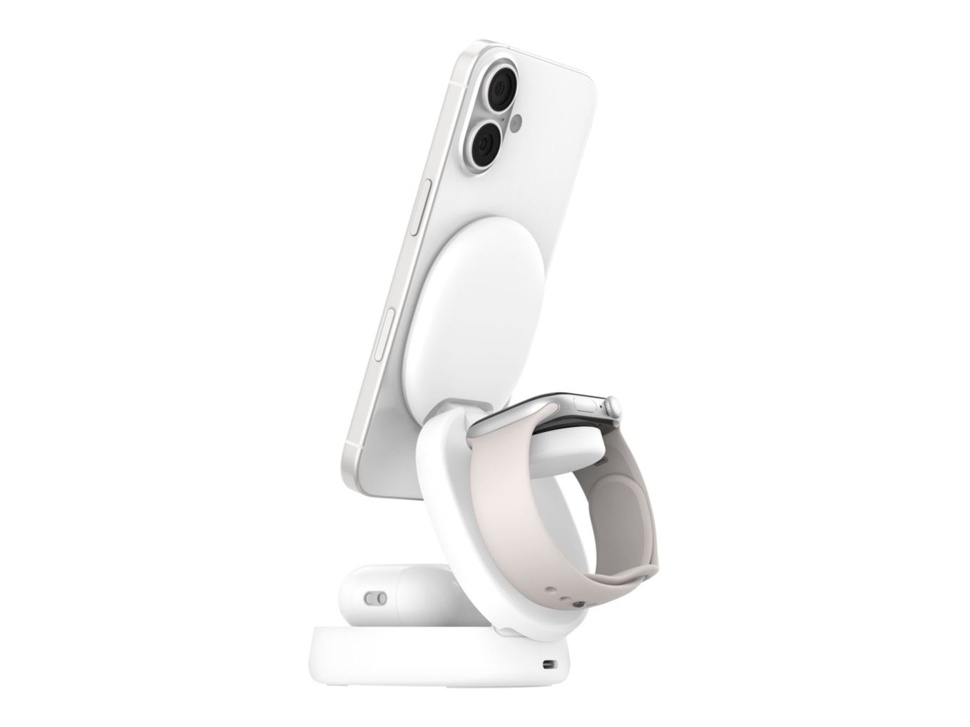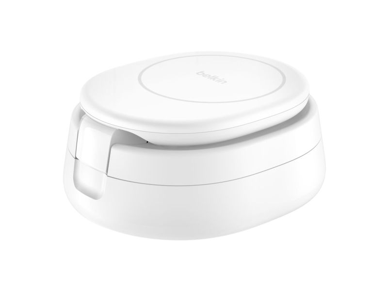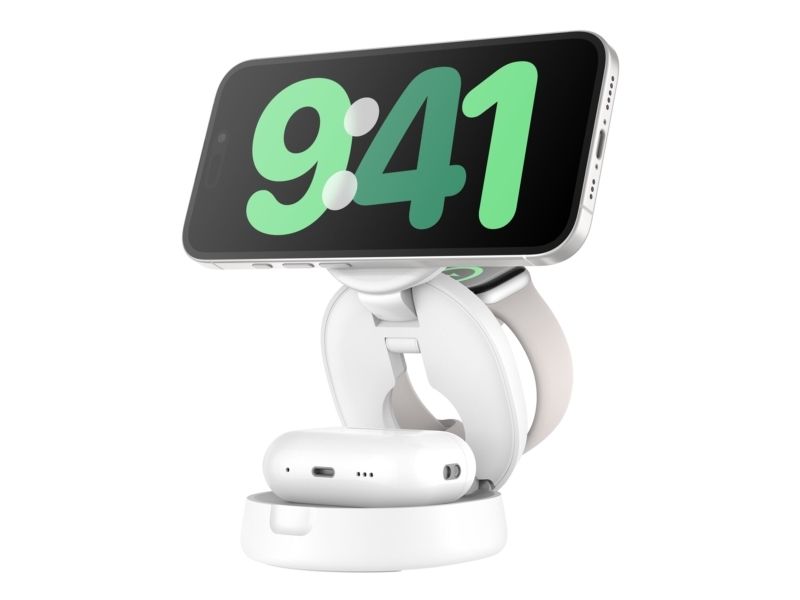 The Belkin BoostCharge Wireless Charging Stand offers a versatile and efficient way to power up your devices. Designed to accommodate a cellular phone, smart watch, and wireless earphones simultaneously, this 3-in-1 magnetic charging station is suitable for anyone looking to streamline their charging needs. Featuring a compact and foldable design, it allows for easy storage when not in use, while the adjustable viewing angle enhances convenience during charging. The stand is compatible with MagSafe, ensuring alignment for optimal charging effectiveness.