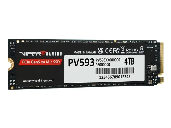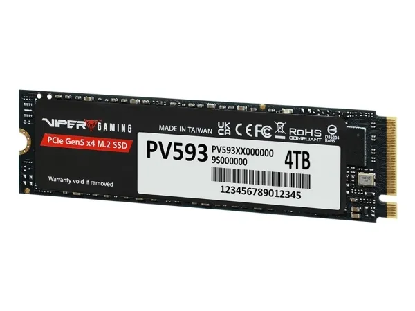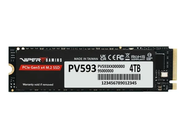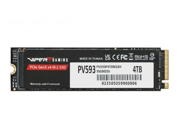 The Patriot Viper Gaming PV593 is designed for high-performance computing and gaming. This solid-state drive features an internal data rate of 14,000 MBps, ensuring swift data access and storage capabilities. With a compact M.2 2280 form factor, it is optimized for modern systems while utilizing the PCI Express 5.0 x4 (NVMe) interface for enhanced speed and efficiency. Features like dynamic SLC caching and thermal throttling help maintain optimal performance during intensive tasks. The inclusion of powerful error correction technologies, such as ECC and LDPC, adds an extra layer of reliability, making it ideal for gamers and professionals alike. Whether for gaming, content creation, or everyday computing, this drive provides a solution to meet various demands with efficiency and speed.