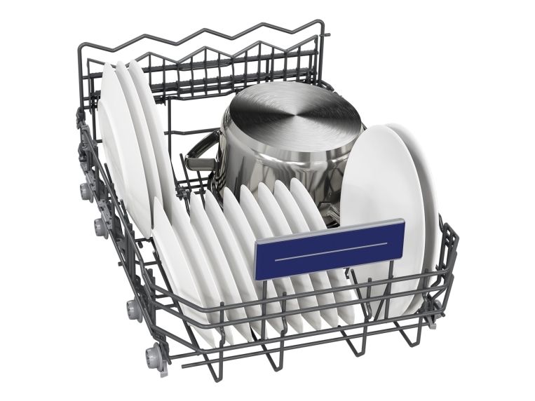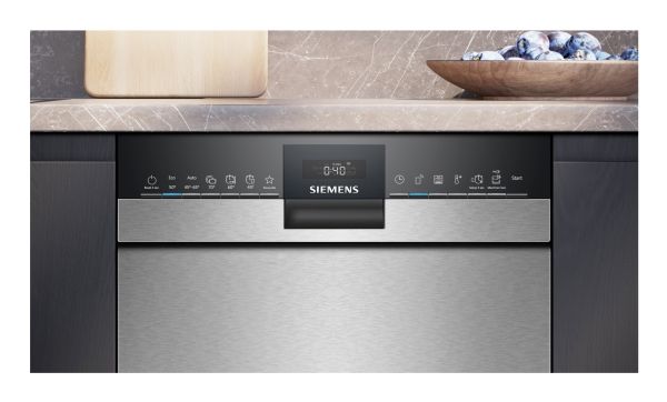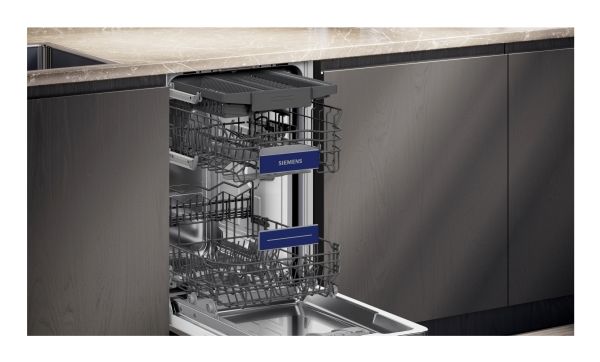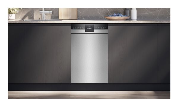 Den inbyggda diskmaskinen Siemens iQ300 SR43ES25ME erbjuder rengöringsfunktioner med effektiv användning av vatten och energi. Den har sex diskprogram, inklusive Eco, Hygiene Plus och Quick-inställningar, vilket gör den mångsidig för olika rengöringsbehov. Det justerbara övre korgen Rackmatic och den innovativa VarioDrawer, tillsammans med flera hopfällbara tallrikshållare och koppställ i både det övre och nedre korgen, ger flexibilitet vid placering av disk i olika storlekar. Denna diskmaskin är utformad för effektivitet och använder endast 8,7 liter vatten per cykel, och dess ljudpaket håller ljudnivån på hanterbara 44 dB(A). Barnsäkerheten och AquaStop-läckageskyddet garanterar säkerheten, medan den digitala displayen och Wi-Fi-kompatibiliteten med röststyrning ger extra bekvämlighet när du hanterar diskningen från var som helst i hemmet. Med sitt självrengörande trippelfiltreringssystem och intelligenta AquaSensor för programoptimering är Siemens iQ300 byggd för att hantera dina diskbehov på ett smidigt sätt.