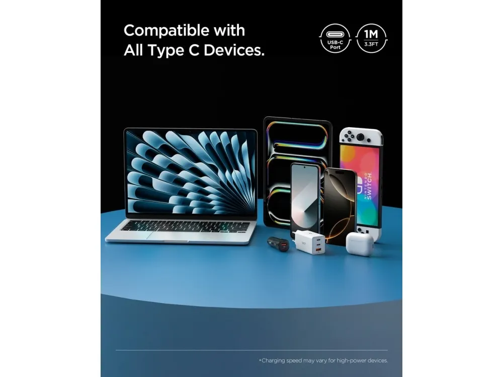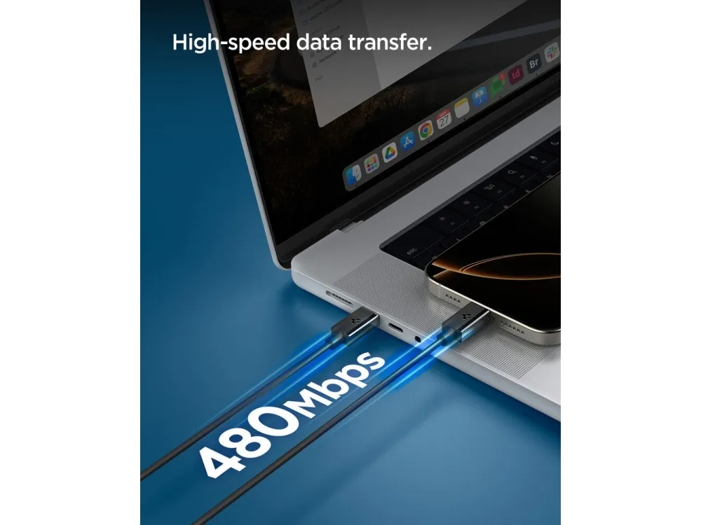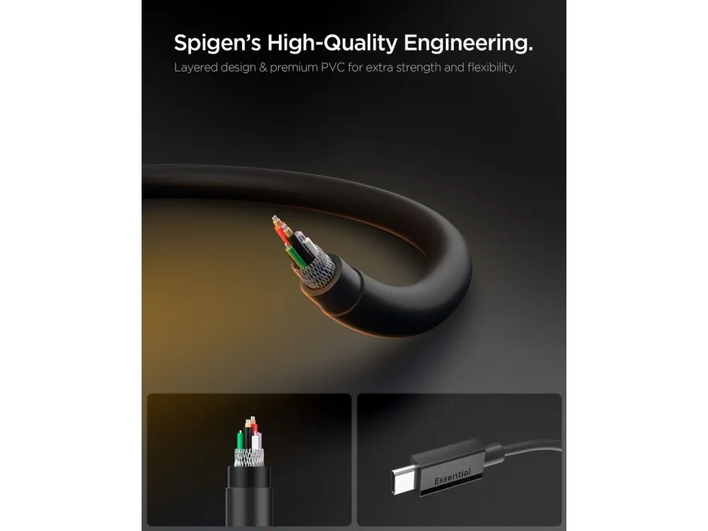 Spigen ACA08718, 1 m, USB C, USB C, USB 2.0, 0,48 Gbit/s, Svart