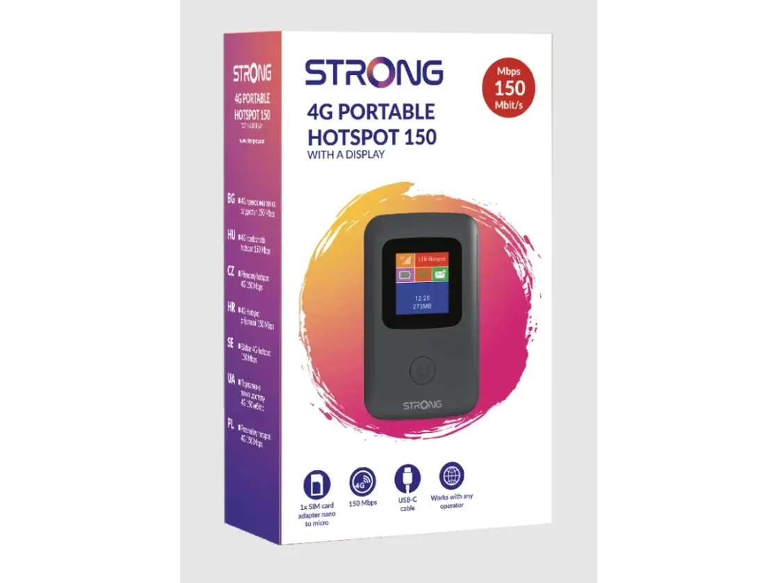 Strong 4GMIFI150CD, Mobil nätverksmodul, Svart, Bärbar, Batterinivå, Wi-Fi, 802.11b, 802.11g, Wi-Fi 4 (802.11n), 150 Mbit/s