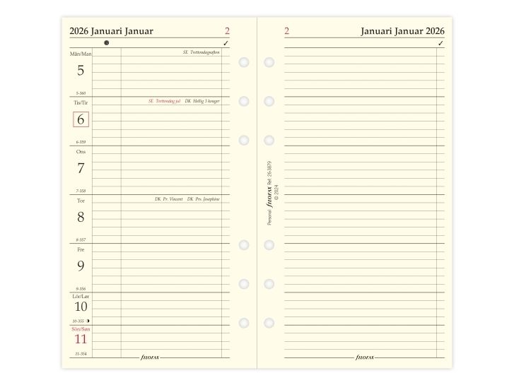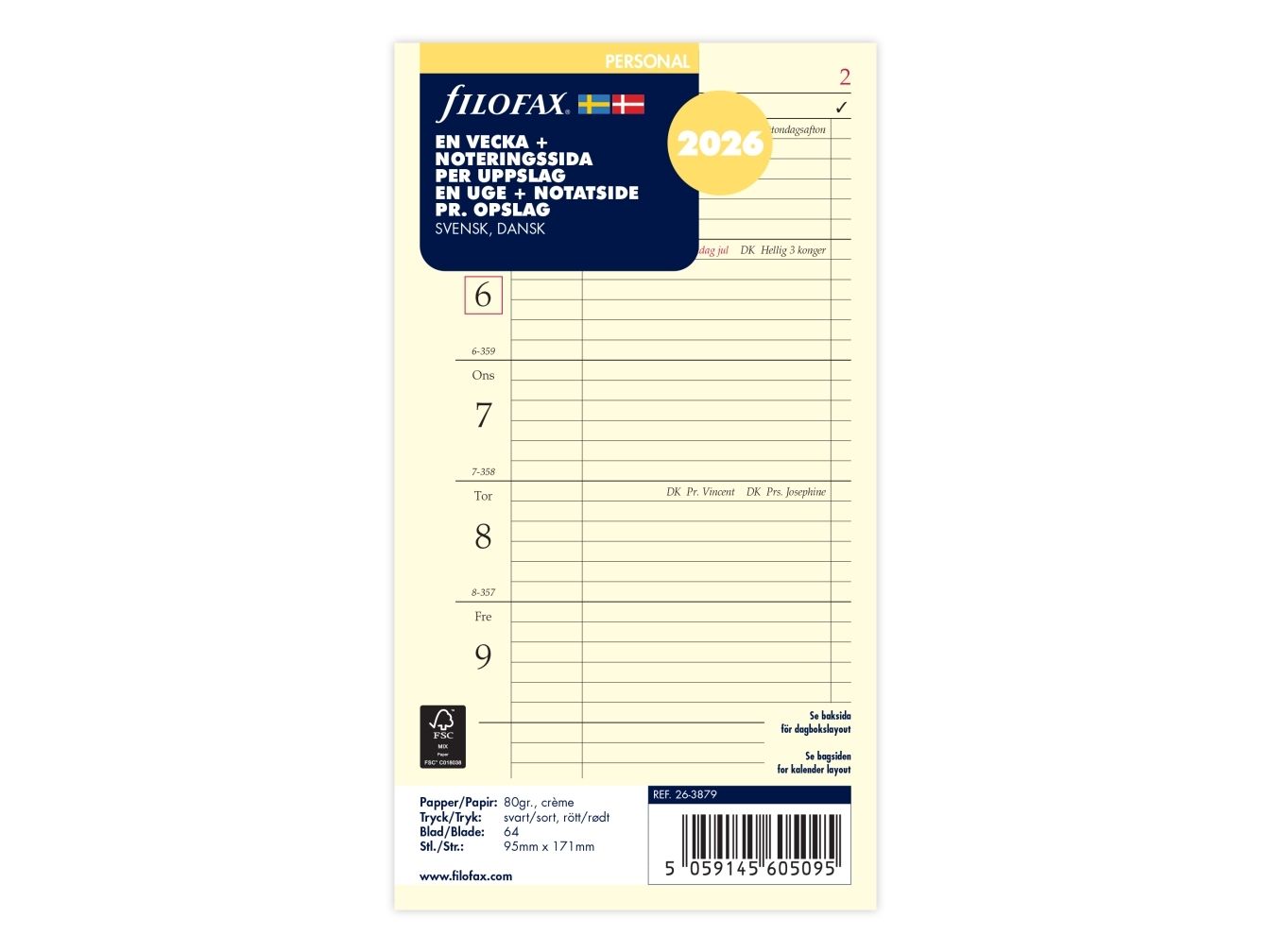 Refill Personal 2026 vecka per sida + anteckningar Svensk/Dansk/Norsk
