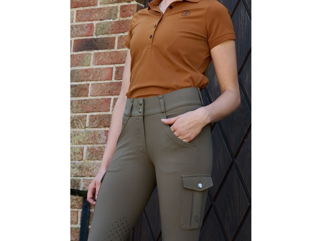 Mildred är en ny ridbyxa i cargo model som bygger på vår populära Rigmor byxa. Rigmor är ju ridbyxan som alla säger "WOW detta är tveklöst den skönaste ridbyxan jag någonsin haft på mig" när dom provar dom. Mildred är en vidareutveckling. Med Mildred får man även borstad insida som isolerar bättre vid kyla och två snygga benfickor som går att stänga, praktiskt för mobilen. Mildred är en snygg sadelskuren ridbyxa med skön passform. Finns både som knäskodd och helskodd med silicon för bra grepp. Elastiskt lättviktsmaterial med 4-vägs stretch. Materialet är vattenavvisande, snabbtorkande och med UV-skydd. Fickor fram och lycra vid benslut. Innerbenslängd ca 72 cm. Kommer i en grön färg. Elastiskt lättviktsmaterial som gör att byxan känns lätt på kroppen. 4-vägsstretch. Vattenavisande. Snabbtorkande och UV-skydd. Fickor fram och lycra vid benslut. Passform: Slim fit. 92% meryl nylon, 8% spandex. Maskintvätt i 30 grader. Tvättas med avigsidan ut.