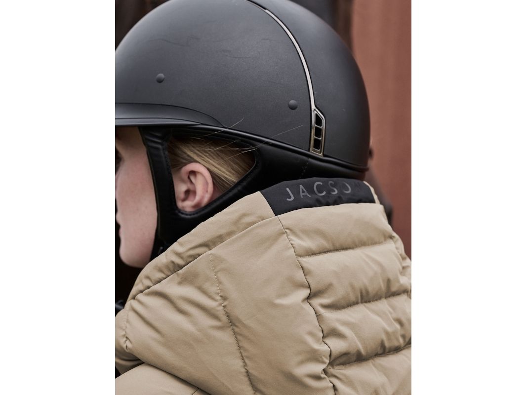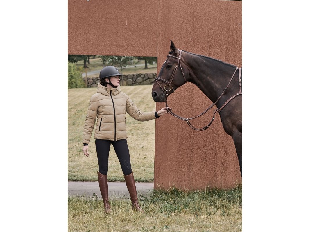 Vår vinterridjacka i puffermodell är det ultimata valet för en stilmedveten ryttare som värdesätter komfort och funktionalitet. Med en enkel och klassisk design har den allt du behöver för att hålla dig varm och bekväm under vinter-ridturen: - Stilren passform: Jackan är skräddad för en figurnära passform som inte bara ger dig värme utan också en tidlös och smickrande look. - Värme utan dun: Vår dunliknande syntetsfyllning ger jackan värme utan att använda fjädrar. Så du kan njuta av kylan med gott samvete. - Justerbar huva: En fast justerbar huva ger extra skydd mot vind och kyla, så att du kan fokusera på din ridupplevelse. - Praktiska fickor: Två fickor med dragkedja framtill ger dig gott om utrymme för att förvara små tillhörigheter och hålla händerna varma. Det finns även en innerficka med dragkedja. - Anpassningsbar passform: Den tvåvägsdragkedja framtill och dragskon i nederkant ger dig möjlighet att anpassa jackan efter din komfort och stil. Jackan ger dig som ryttare en ökad rörelsefrihet tack vare dess stretchiga material, som dessutom är vattenavvisande. Förutom att jackan är skön och ”lätt” att ha på sig så är tjockleken anpassad för ridturen, och klarar de flesta väder under höst-och vinterhalvåret. Med vår vinterridjacka i puffermodell behöver du inte kompromissa mellan stil och funktionalitet. Den är det perfekta tillskottet till din vintergarderob och kommer att hålla dig varm och bekväm under dina ridturer. Yttermaterial: 88% nylon, 12% spandex med PU membran som gör jackan vattenavvisande. Insida: 100% Polyester Fyllning: 100% Polyester Maskintvätt i 30 grader. Torktumlas med tennisbollar.