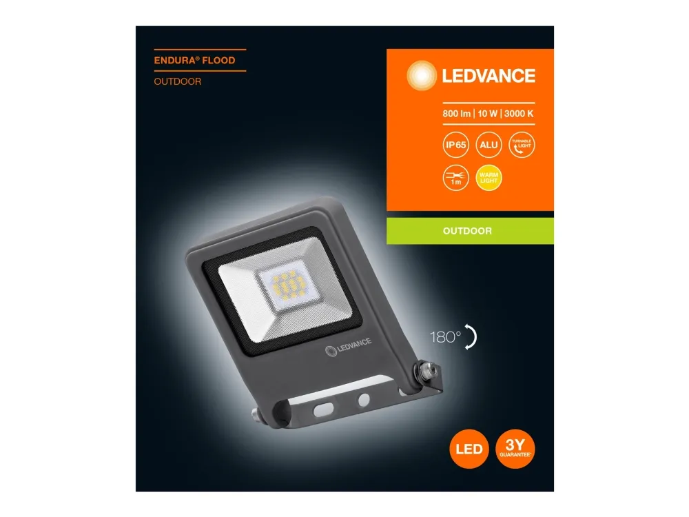 LEDVANCE ENDURA - Strålkastare - LED - 10 W - varmt vitt ljus - 3000 K - mörkgrå