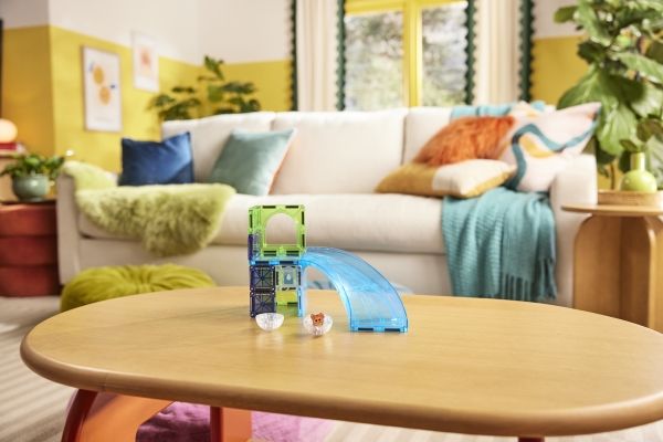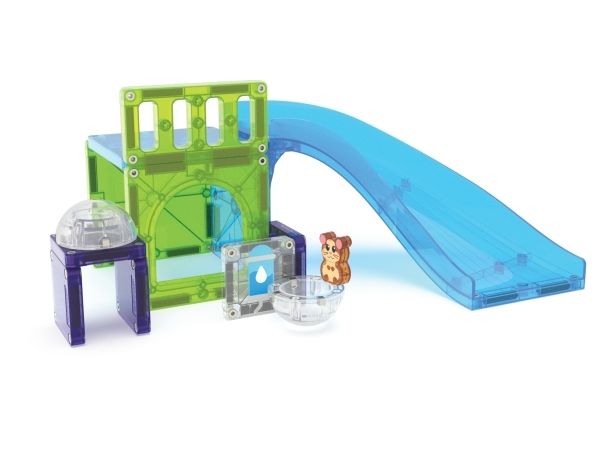 Ett roligt magnetiskt mini bygg- och lekset med hamsterfigur, hamsterboll och rutschkana från MAGNA-TILES. Från 3 år.