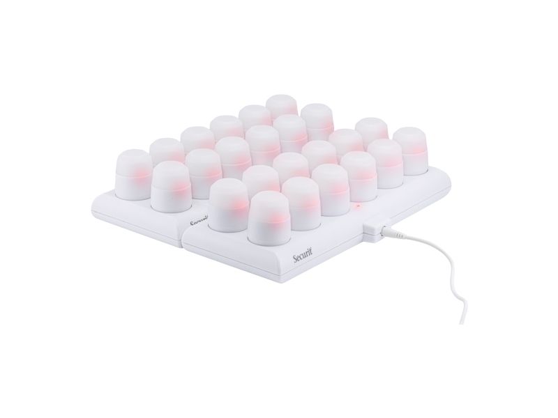 Securit® set 12 st LUNA glasljusstakar, 12 st LED värmeljus och laddstation, vit/vitt ljus