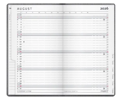 Mayland 26071000, 36 ark, Inbunden, Grå, Month on 2 pages, Linjerat papper, 84 mm