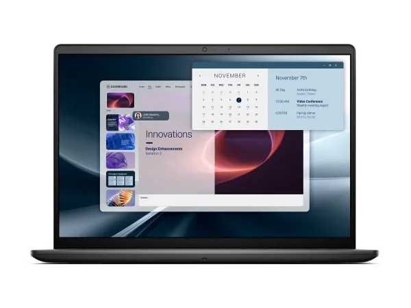Dell Pro är utrustad med en 14-tums Full HD Plus-skärm och erbjuder levande bilder och breda betraktningsvinklar, vilket gör den idealisk för presentationer eller videovisning. Funktioner som antireflexbehandling och en ljusstyrka på 300 cd/m2 förbättrar tittarupplevelsen i olika ljusförhållanden. Dessutom är det enkelt att hålla sig uppkopplad, både hemma och på resande fot, tack vare inbyggd Bluetooth- och Wi-Fi 6-anslutning.