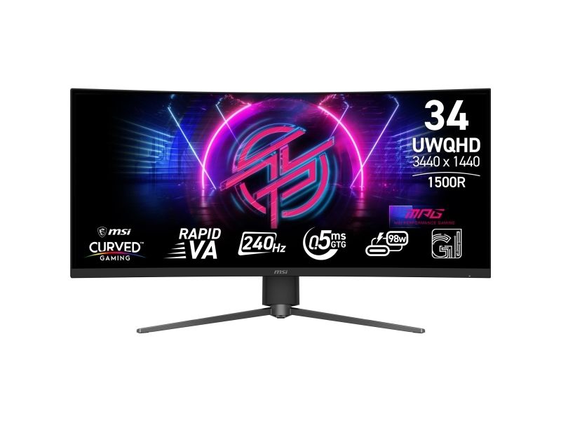 The MSI MPG 346CQRF X24 brings a 34-inch curved display to your desktop setup, offering a native resolution of 3440 x 1440 for an immersive viewing experience. With a 240 Hz refresh rate and a rapid 0.5 ms response time, this monitor is designed for gamers and professionals alike, ensuring smooth visual performance and reduced motion blur. The monitor features a contrast ratio of 4000:1 and supports an extensive range of colors, delivering vibrant images and consistent performance on every task. Equipped with Adaptive-Sync technology, Anti-Flicker, and Less Blue Light technology, the MPG 346CQRF X24 enhances visual comfort during long usage periods while minimizing eye strain. The built-in USB 2.0 hub allows for convenient connectivity while the versatile stand offers height, tilt, and swivel adjustments, so users can customize their viewing angles to find the perfect position. This monitor provides display quality and integrates features like picture-in-picture and console mode for an optimized entertainment experience.