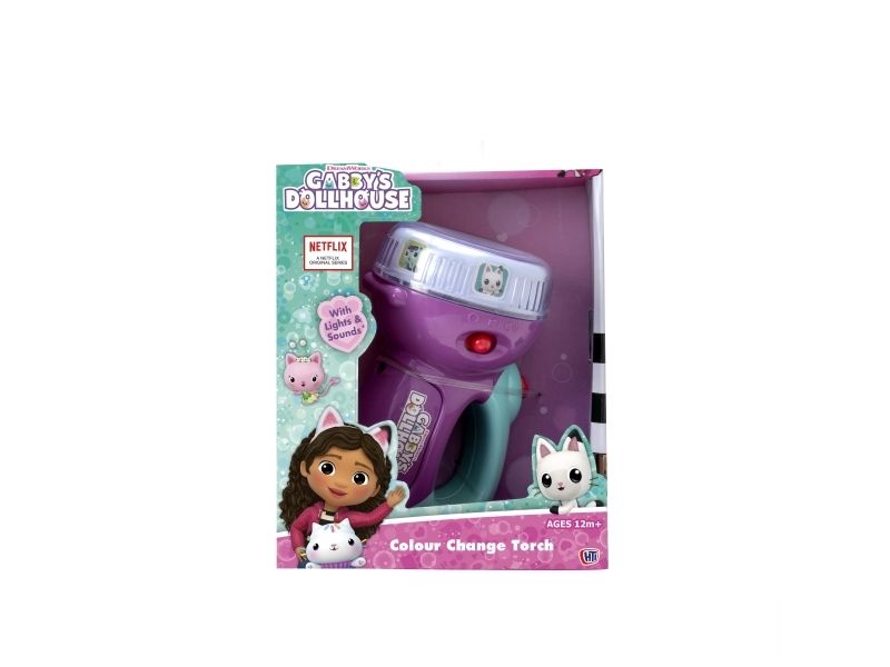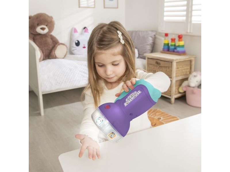 Introducera ditt barn till lek i mörkret med Gabbys färgskiftande lykta! Den har mer än 6 färginställningar och spelar 7 ljudeffekter från Gabby-showen. Exkl. 3xAAA batterier. Från 1 år.
