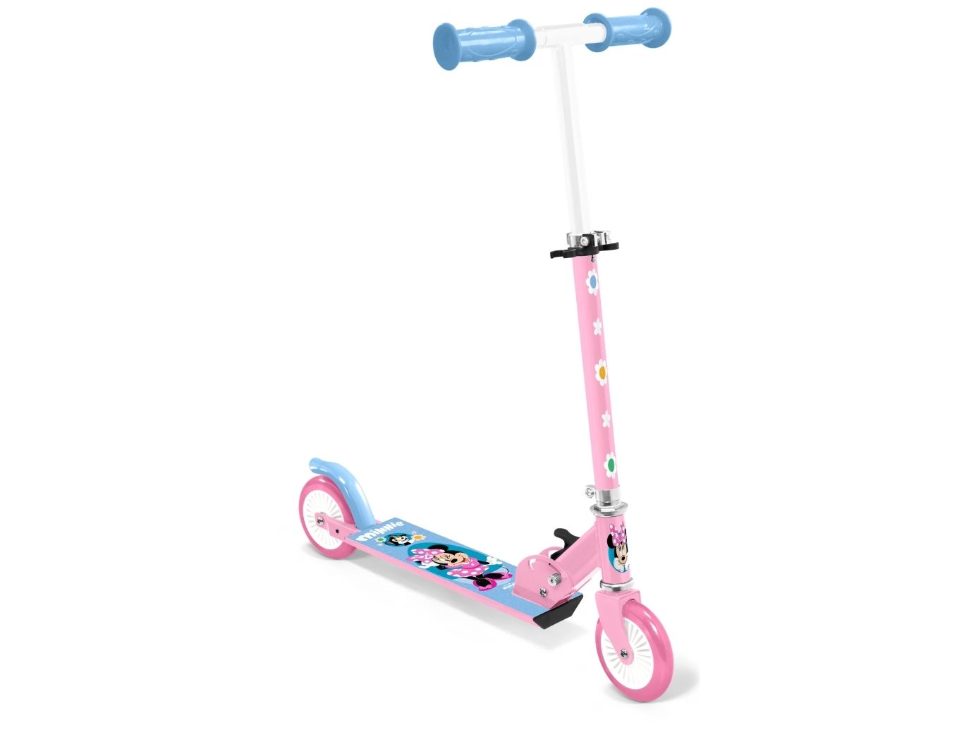 Minnie Mouse hopfällbar sparkcykel med broms baktill. Den perfekta sparkcykeln för alla fans som tar dig överallt! Och den är lätt att ta med sig på resor och semestrar. Sparkcykeln är hopfällbar och lätt att ta med sig. Sparkcykelns höjd kan justeras så att den följer barnet. Styret har ett skumhandtag för ett fast grepp samt en ståplatta av aluminium med en halkfri yta. Sparkcykeln har en fotbroms baktill.
