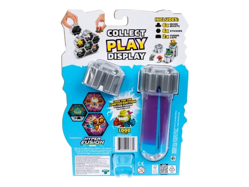 Tillsammans med de 6 Swarms-figurerna följer två Fusionsmössor från reaktionsglasen, som fungerar som ett Fusions figurstativ där du kan visa upp dina häftiga Hyper Fusion Swarms-figurer.