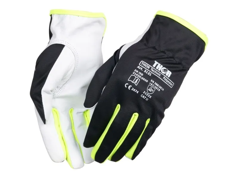 Gedeskindshandske, THOR Teknik Polyester, 12, sort, gedeskind/polyester - (12 stk.)