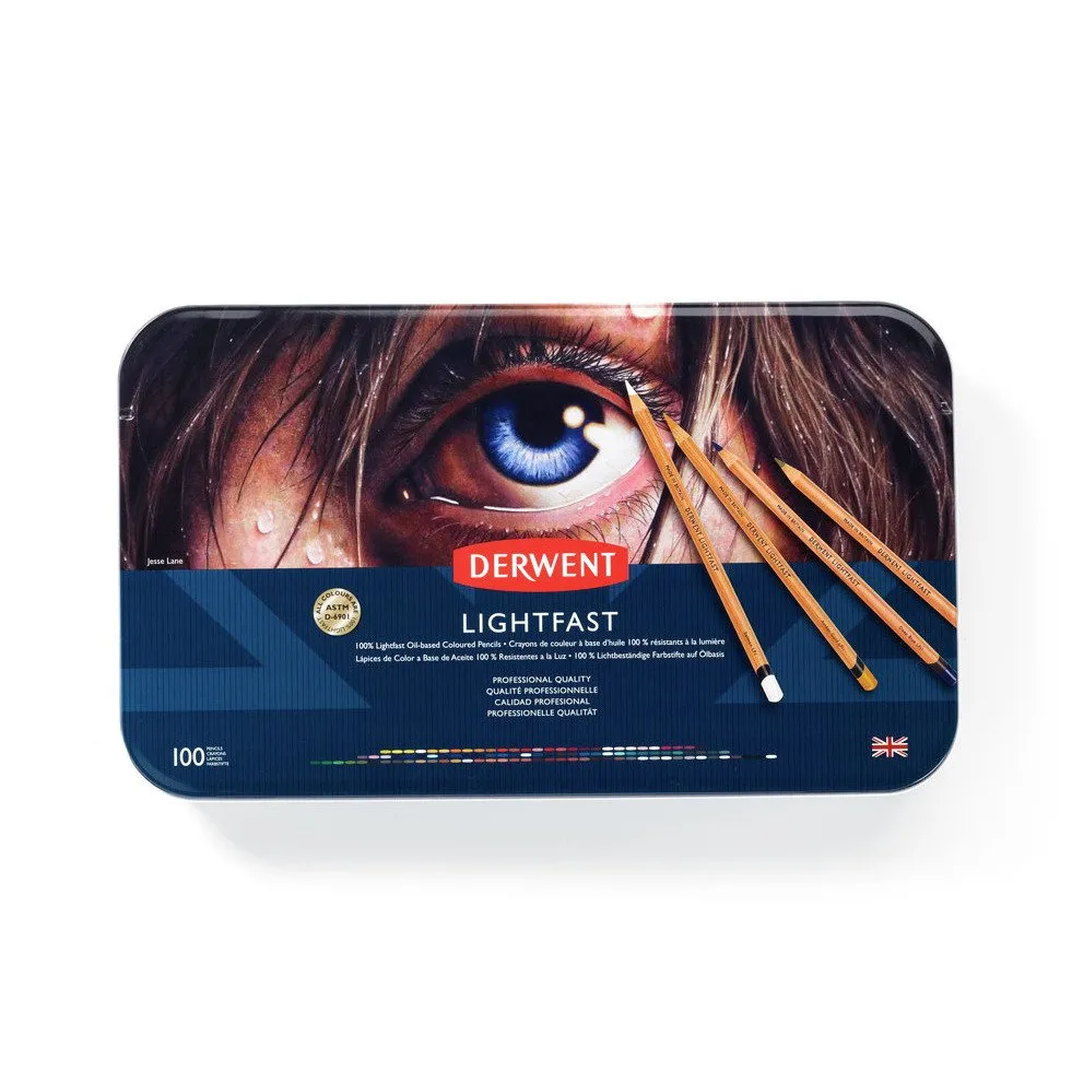 Derwent Lightfast färgpenna 100 st. i plåtask - oljebaserad färgpenna