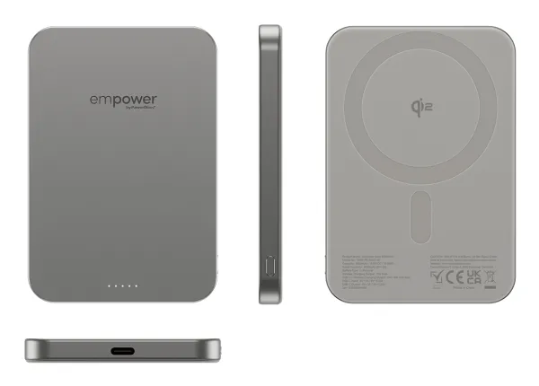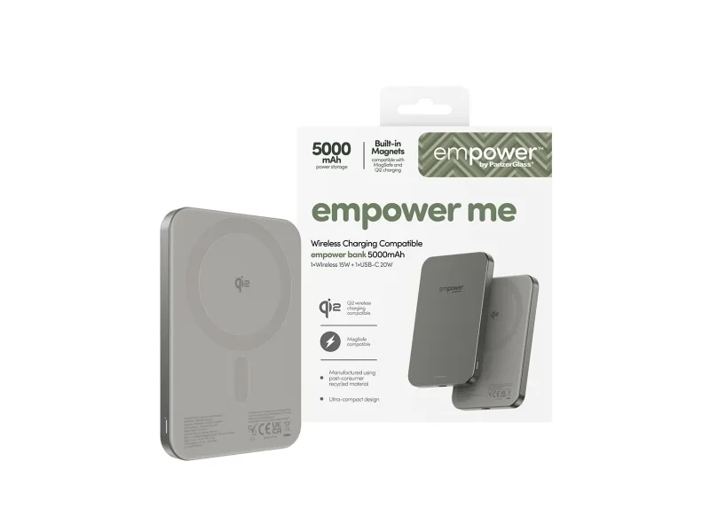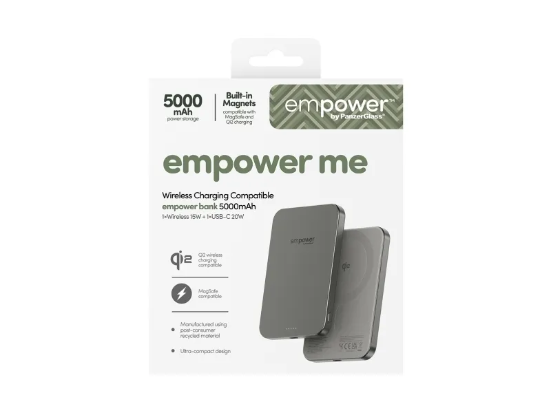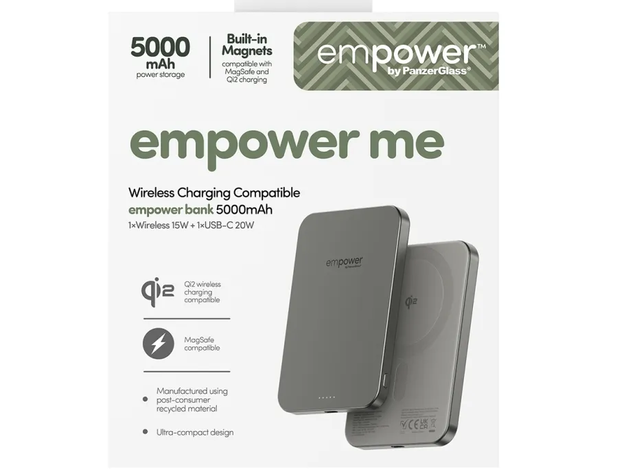 PanzerGlass empower by ® empower Bank | 5000mAh | Titanium, Apple, Apple - iPhone 17/16/15/14/13/12, Qi enabled smartphones, Airpods Pro Gen 2/3, Airpods Gen3, Torr applicering, 1 styck